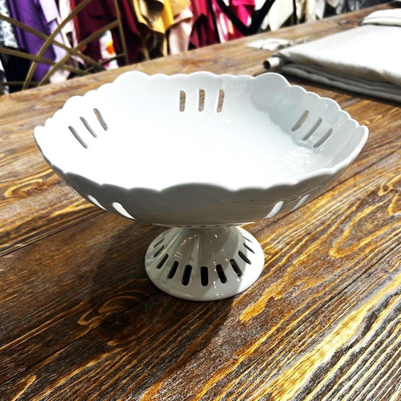 10" CERAMIC WHITE SLOTTED PEDESTAL DISH (6.5"H) 10" CERAMIC WHITE SLOTTED PEDESTAL DISH (6.5"H) 15.00 Add